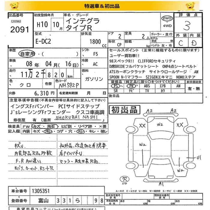 Honda INTEGRA с аукциона Японии JU Miyagi лот № 2091