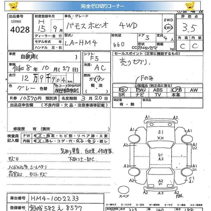 Honda VAMOS с аукциона Японии JU Miyagi лот № 4028