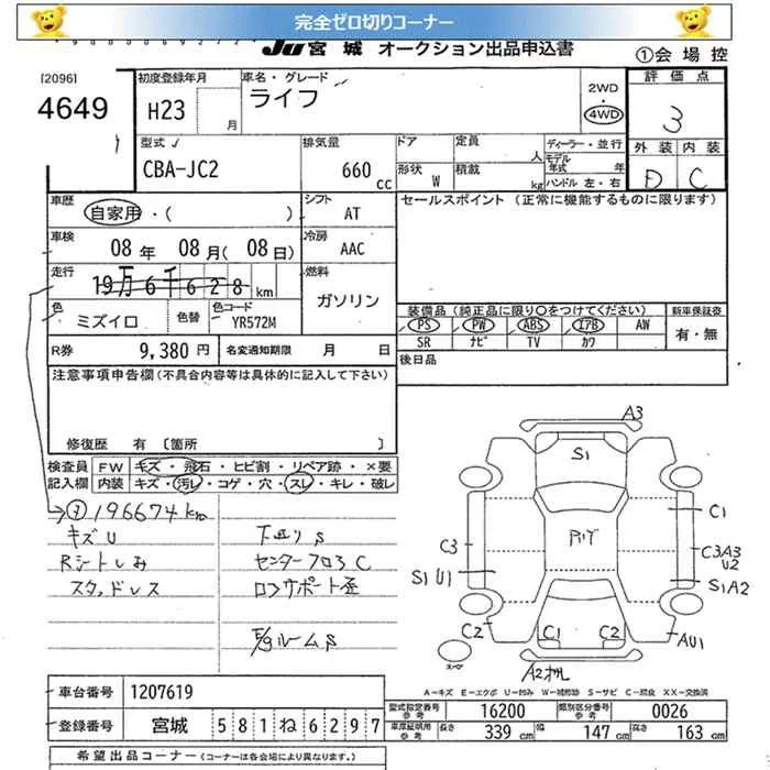 Honda LIFE с аукциона Японии JU Miyagi лот № 4649