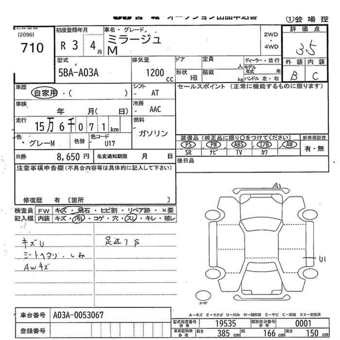 Mitsubishi MIRAGE с аукциона Японии JU Miyagi лот № 710