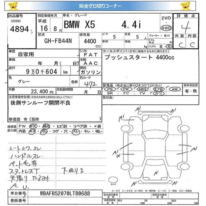 BMW X5 SERIES с аукциона Японии JU Miyagi лот № 4894