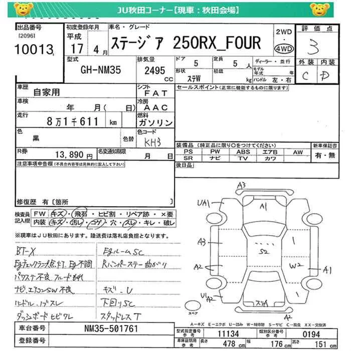 Nissan STAGEA с аукциона Японии JU Miyagi лот № 10013