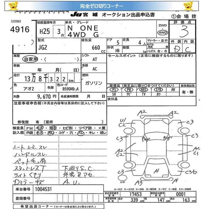 Honda N ONE с аукциона Японии JU Miyagi лот № 4916