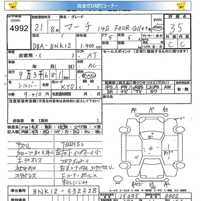Nissan MARCH с аукциона Японии JU Miyagi лот № 4992