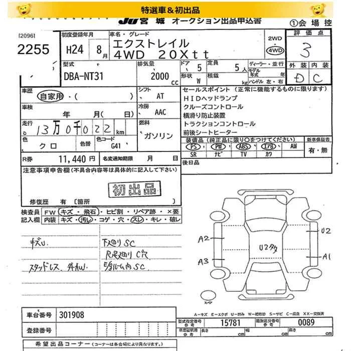 Nissan X-TRAIL с аукциона Японии JU Miyagi лот № 2255