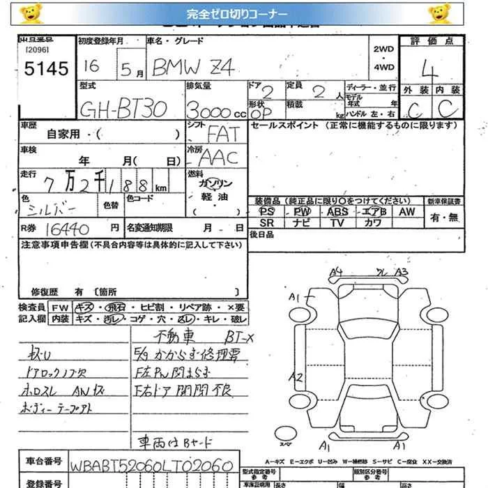 BMW Z4 с аукциона Японии JU Miyagi лот № 5145