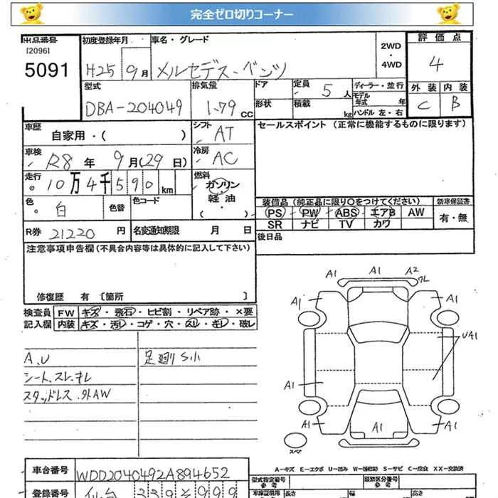 Mercedes-Benz C CLASS с аукциона Японии JU Miyagi лот № 5091