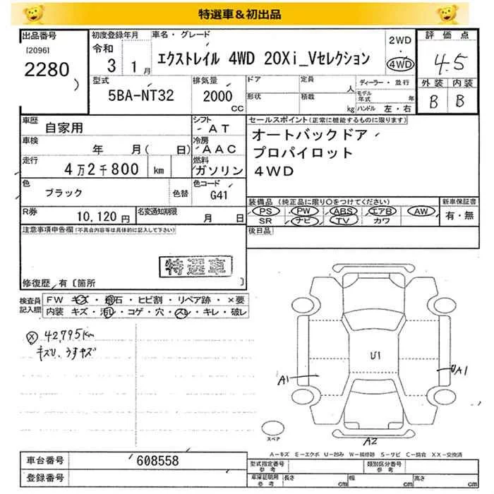 Nissan X-TRAIL с аукциона Японии JU Miyagi лот № 2280