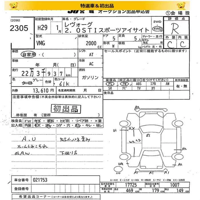 Subaru LEVORG с аукциона Японии JU Miyagi лот № 2305