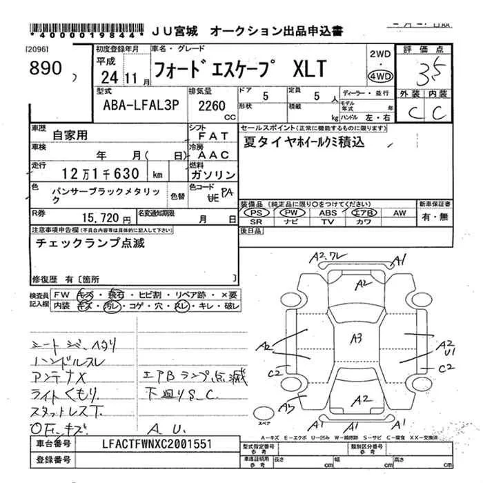Ford ESCAPE с аукциона Японии JU Miyagi лот № 890
