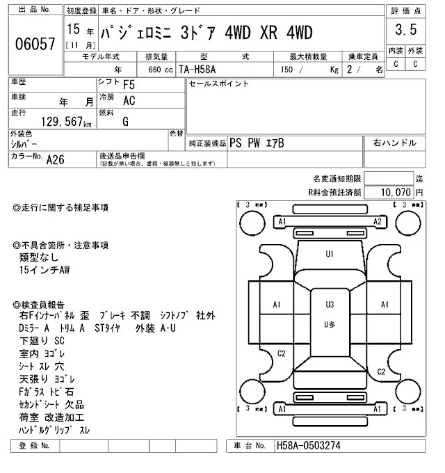 Mitsubishi PAJERO MINI с аукциона Японии ARAI Sendai лот № 6057