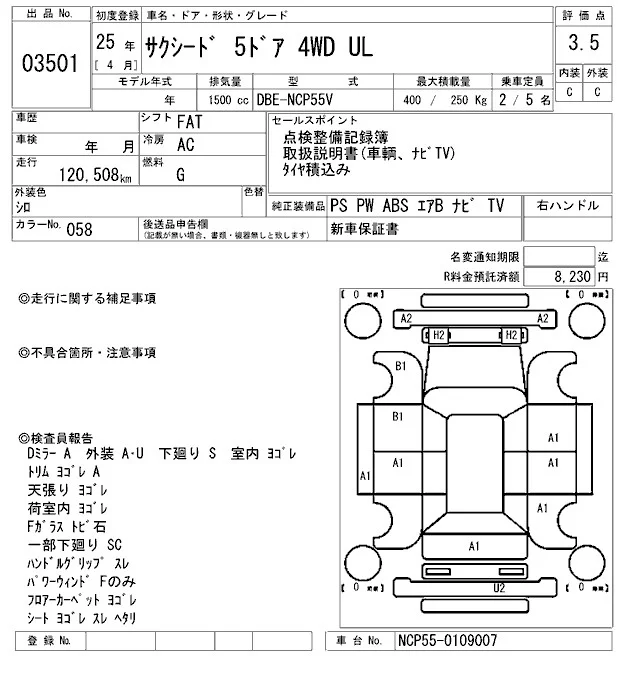 Toyota SUCCEED с аукциона Японии ARAI Sendai лот № 3501
