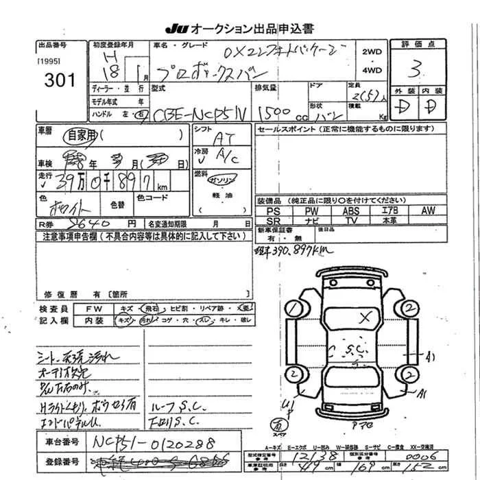 Toyota PROBOX с аукциона Японии JU Okinawa лот № 301