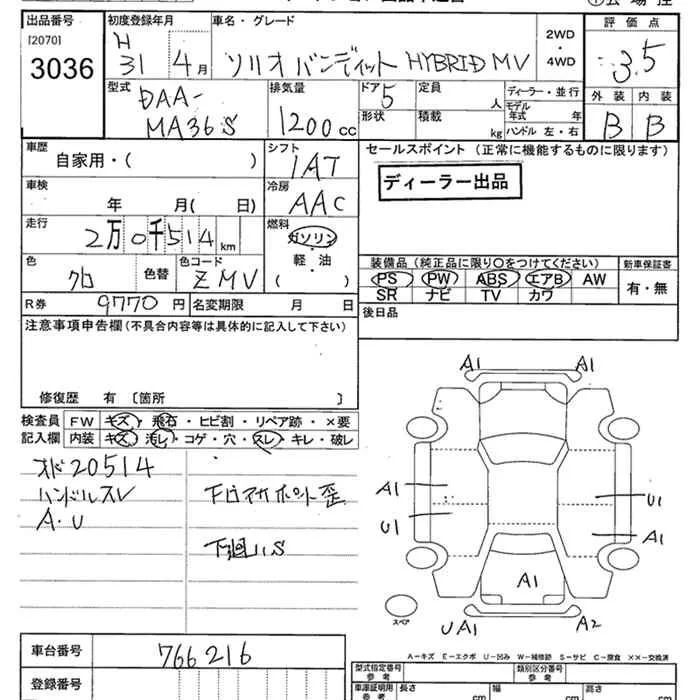 Suzuki SOLIO с аукциона Японии JU Niigata лот № 3036