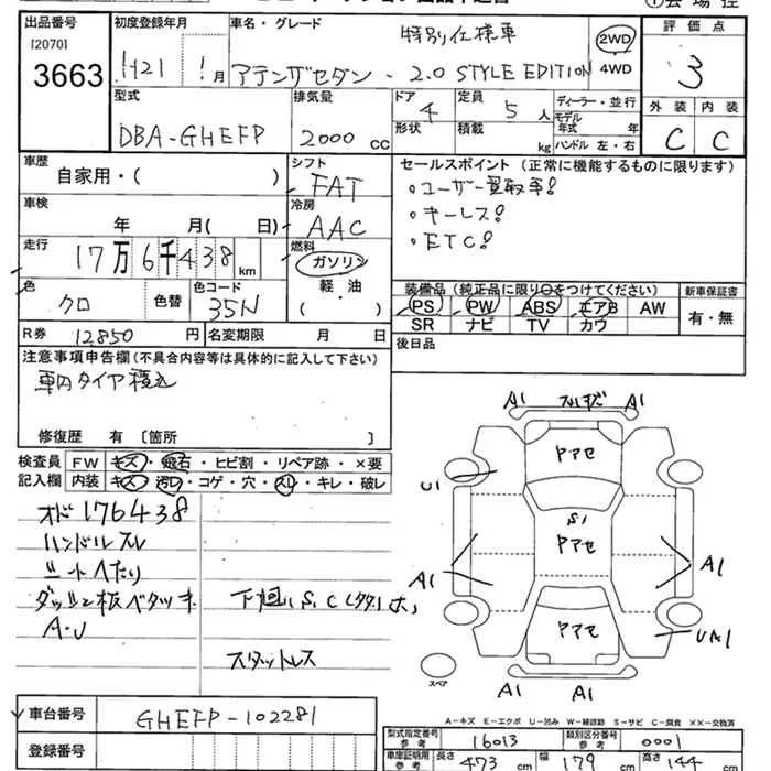 Mazda ATENZA SEDAN с аукциона Японии JU Niigata лот № 3663