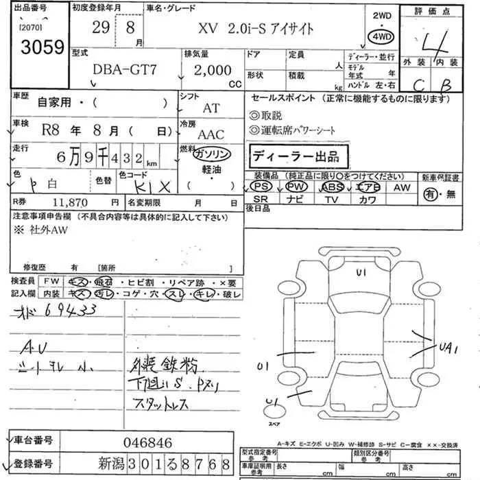 Subaru XV с аукциона Японии JU Niigata лот № 3059