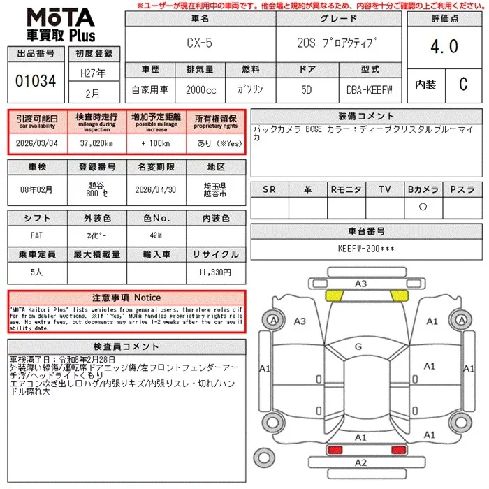 Mazda CX-5 с аукциона Японии MOTA Kuruma Kaitori Plus лот № 1034