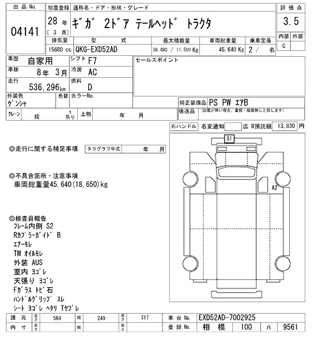 Isuzu GIGA с аукциона Японии ARAI Oyama VT лот № 4141