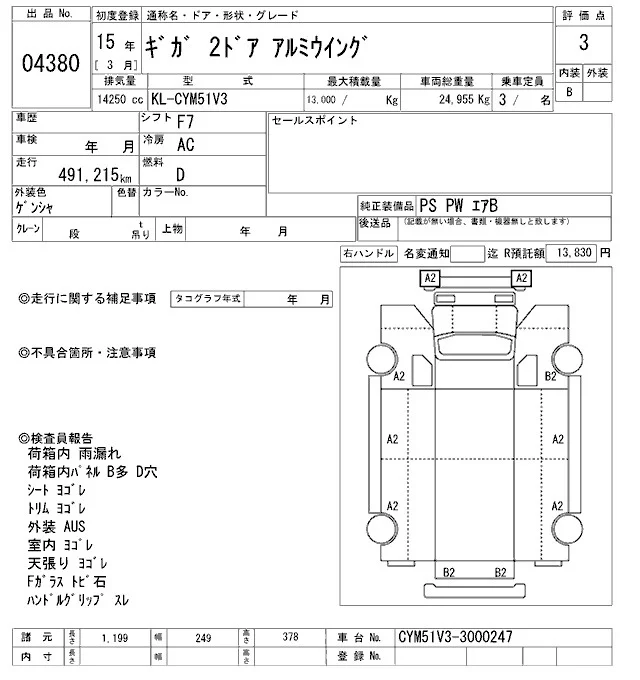 Isuzu GIGA с аукциона Японии ARAI Oyama VT лот № 4380