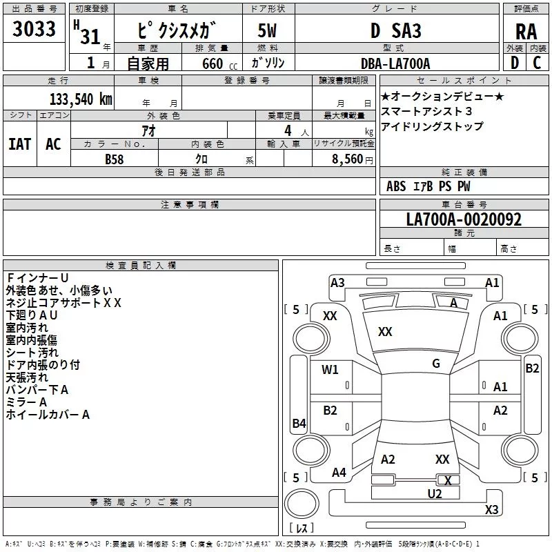 Toyota PIXIS MEGA с аукциона Японии TAA Hyogo лот № 3033