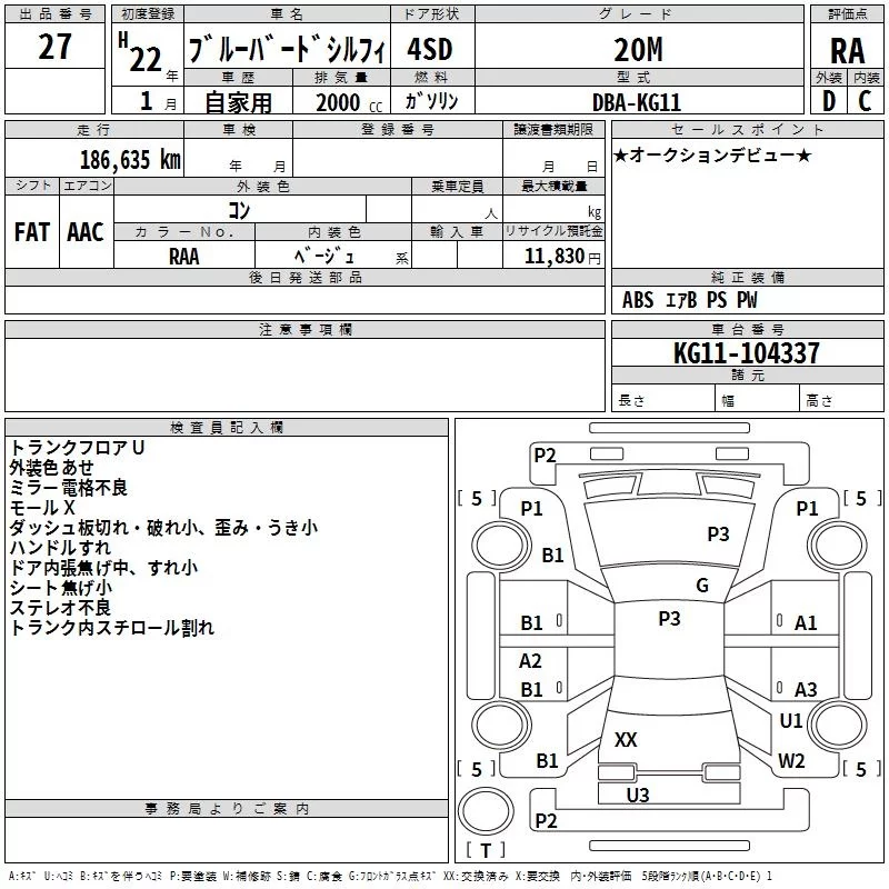 Nissan SYLPHY с аукциона Японии TAA Hyogo лот № 27