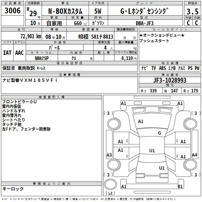 Honda N BOX с аукциона Японии TAA Yokohama лот № 3006