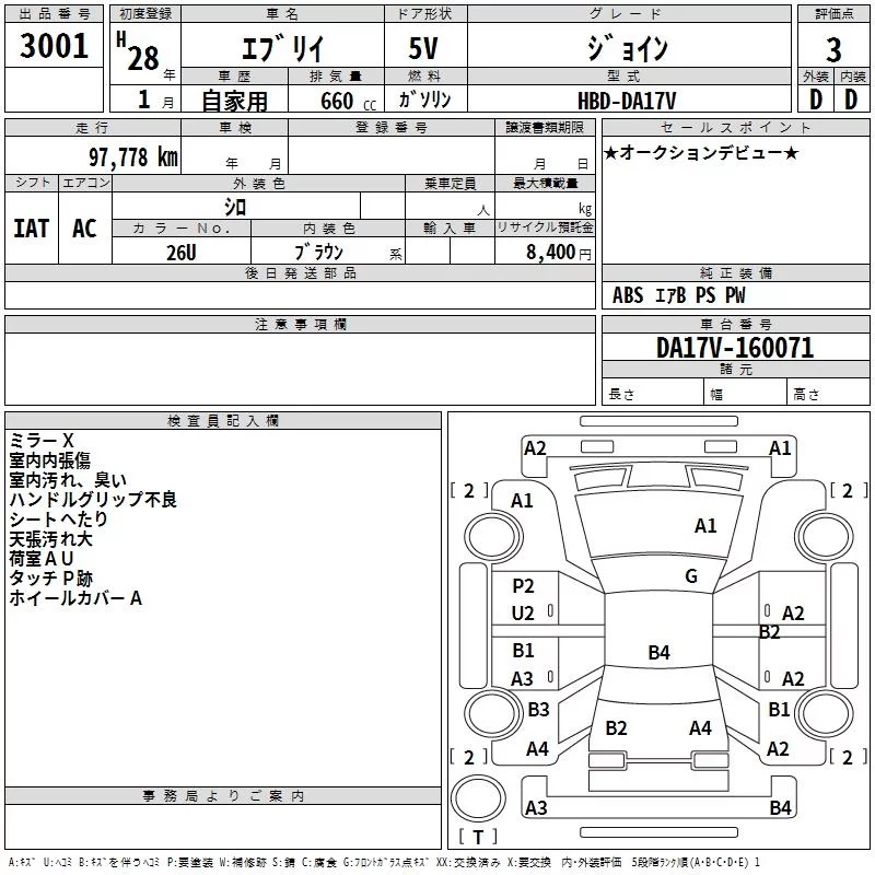 Suzuki EVERY с аукциона Японии TAA Yokohama лот № 3001