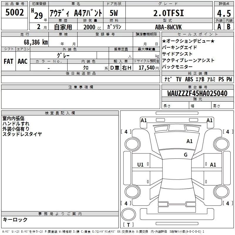 Audi A4 с аукциона Японии TAA Hyogo лот № 5002