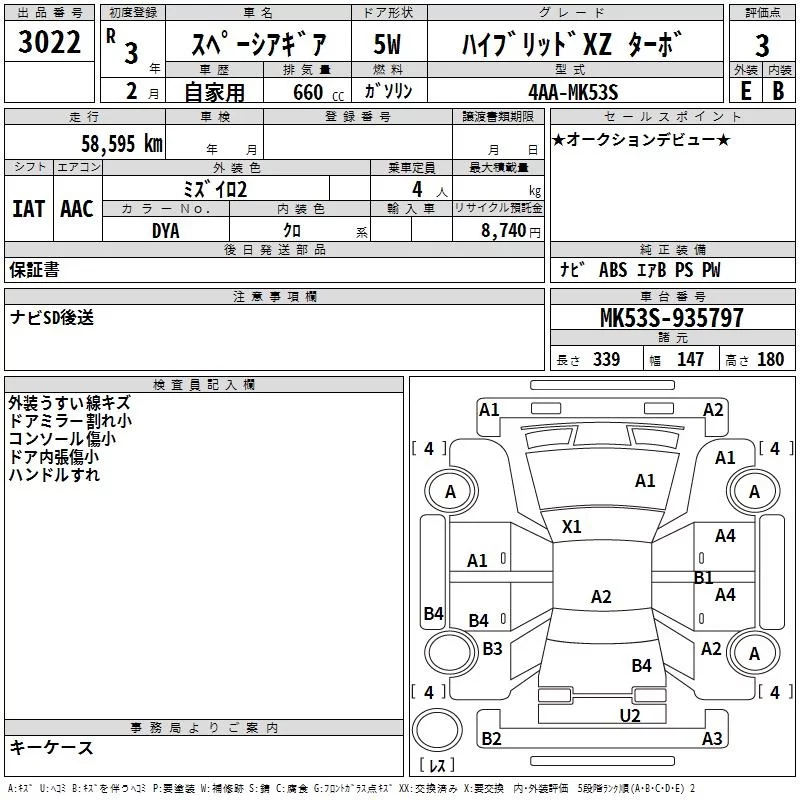 Suzuki SPACIA GEAR с аукциона Японии TAA Yokohama лот № 3022