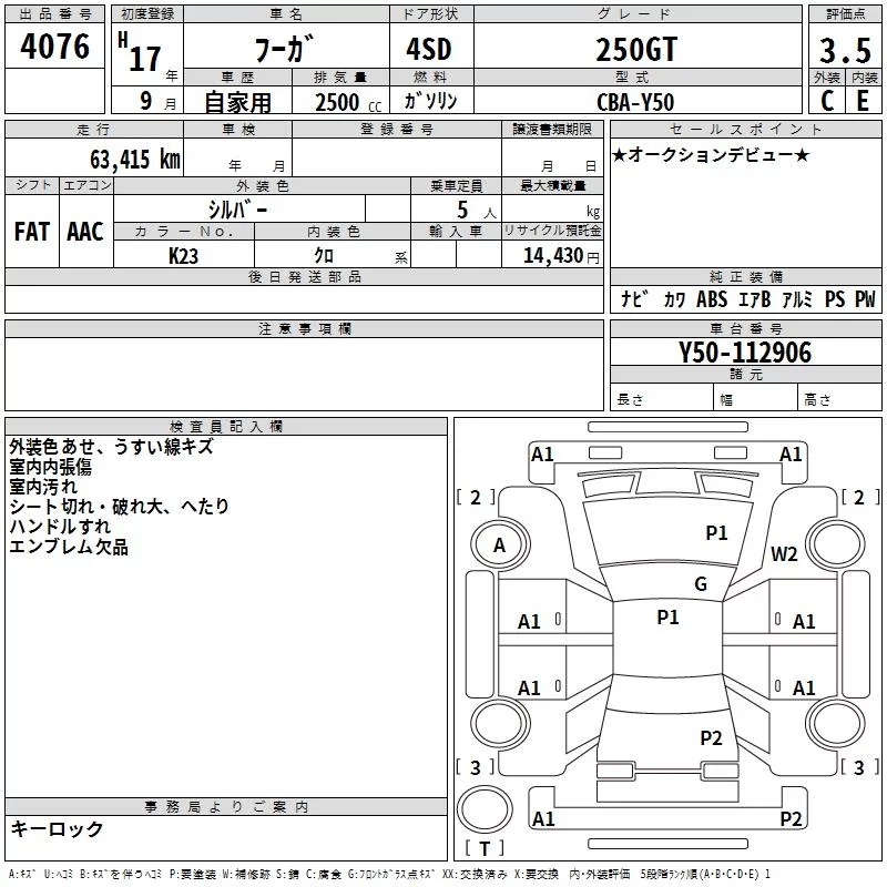 Nissan FUGA с аукциона Японии TAA Yokohama лот № 4076