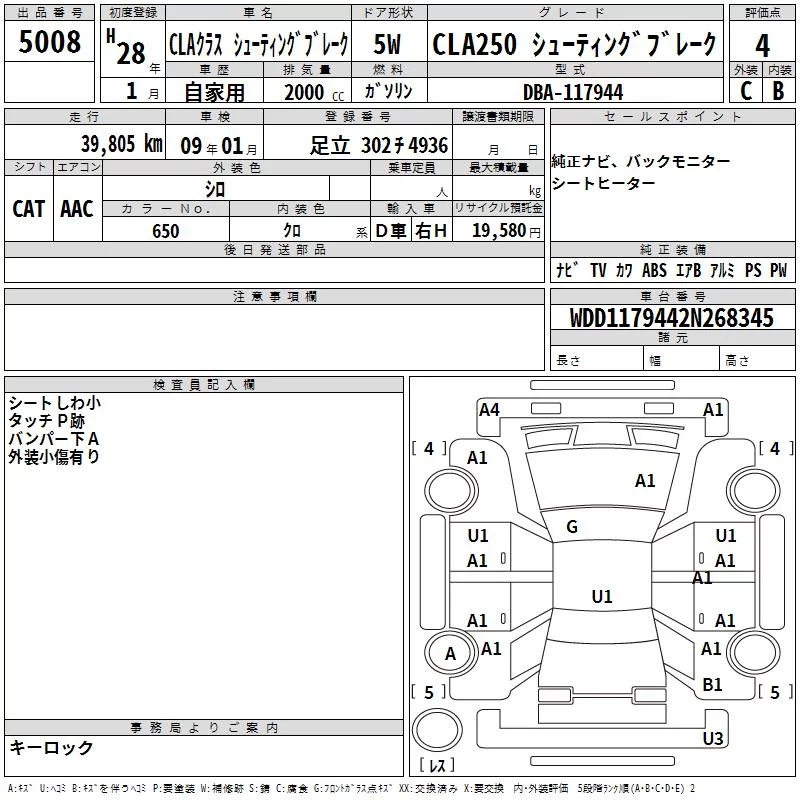 Mercedes-Benz CLA CLASS с аукциона Японии TAA Yokohama лот № 5008