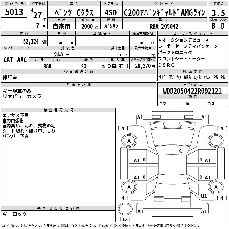 Mercedes-Benz C CLASS с аукциона Японии TAA Yokohama лот № 5013