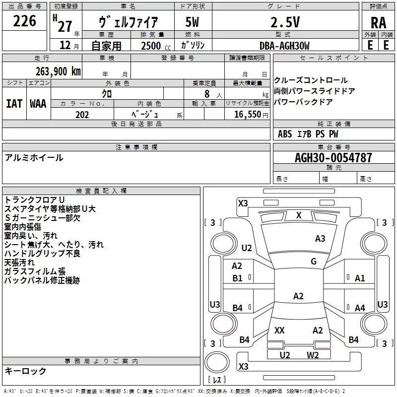 Toyota VELLFIRE с аукциона Японии TAA Yokohama лот № 226