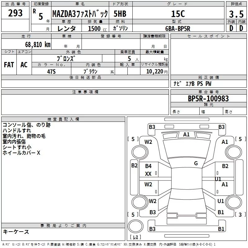 Mazda MAZDA3 с аукциона Японии TAA Yokohama лот № 293