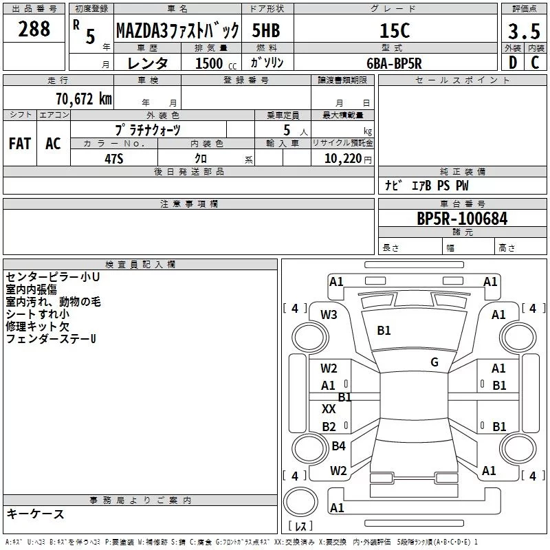 Mazda MAZDA3 с аукциона Японии TAA Yokohama лот № 288