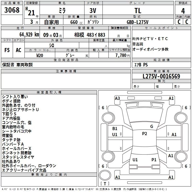 Daihatsu MIRA с аукциона Японии TAA Yokohama лот № 3068