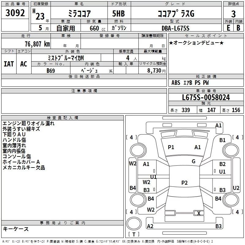Daihatsu MIRA с аукциона Японии TAA Yokohama лот № 3092