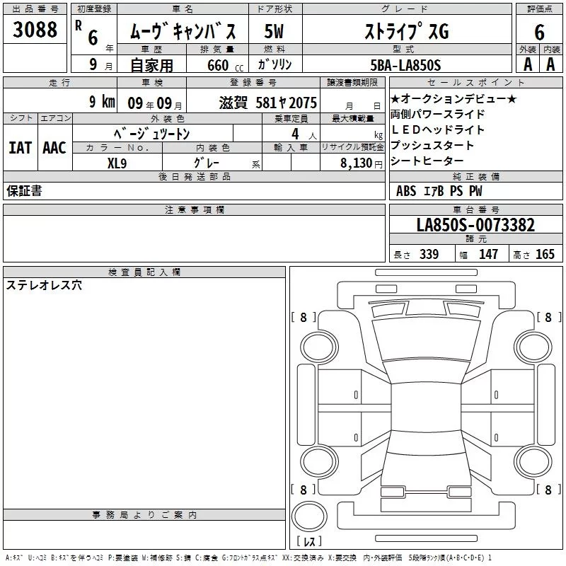 Daihatsu MOVE CANBUS с аукциона Японии TAA Hyogo лот № 3088