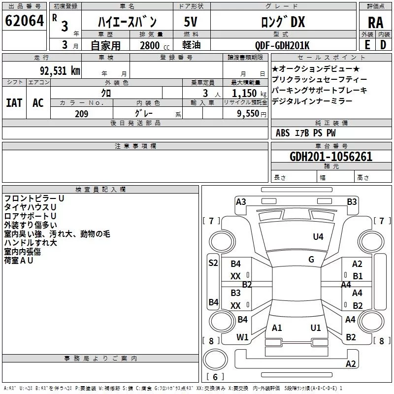 Toyota HIACE VAN с аукциона Японии TAA Yokohama лот № 62064