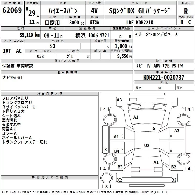 Toyota HIACE VAN с аукциона Японии TAA Yokohama лот № 62069