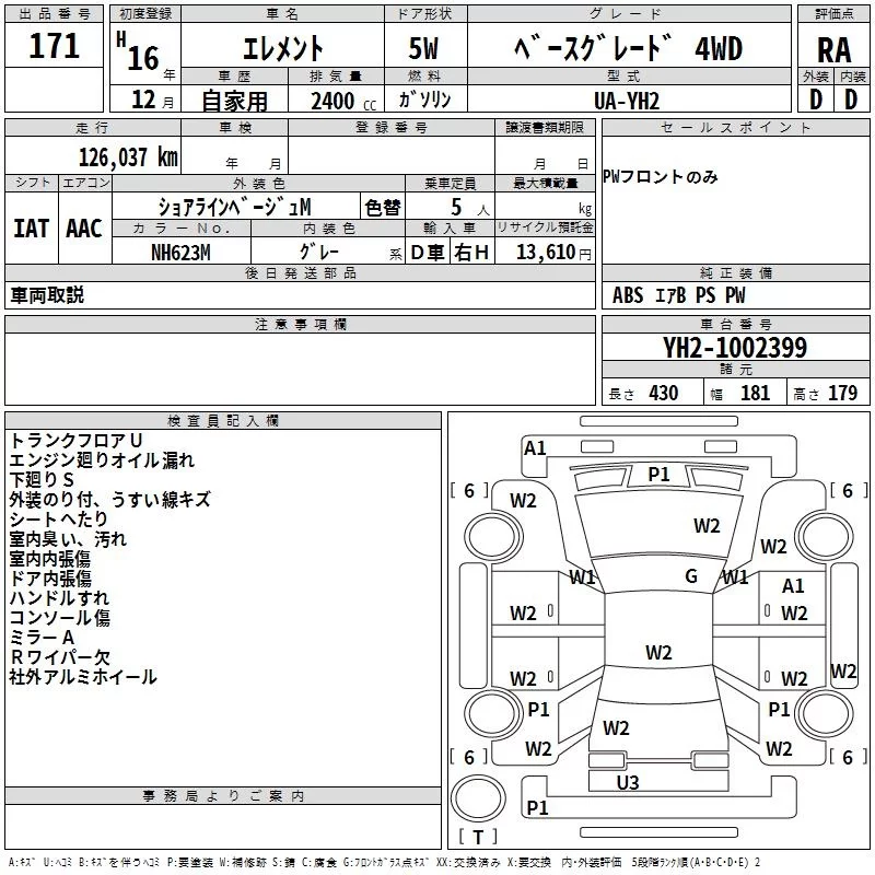 Honda ELEMENT с аукциона Японии TAA Hyogo лот № 171
