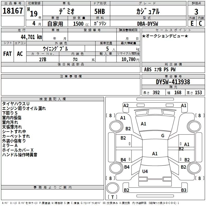 Mazda DEMIO с аукциона Японии TAA Yokohama лот № 18167