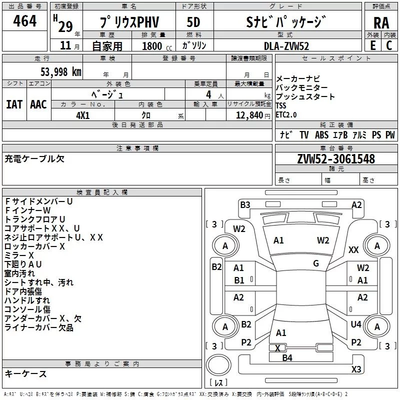 Toyota PRIUS PHV с аукциона Японии TAA Yokohama лот № 464
