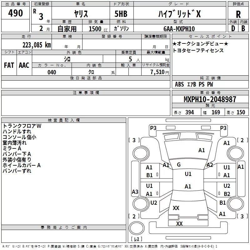Toyota YARIS с аукциона Японии TAA Yokohama лот № 490