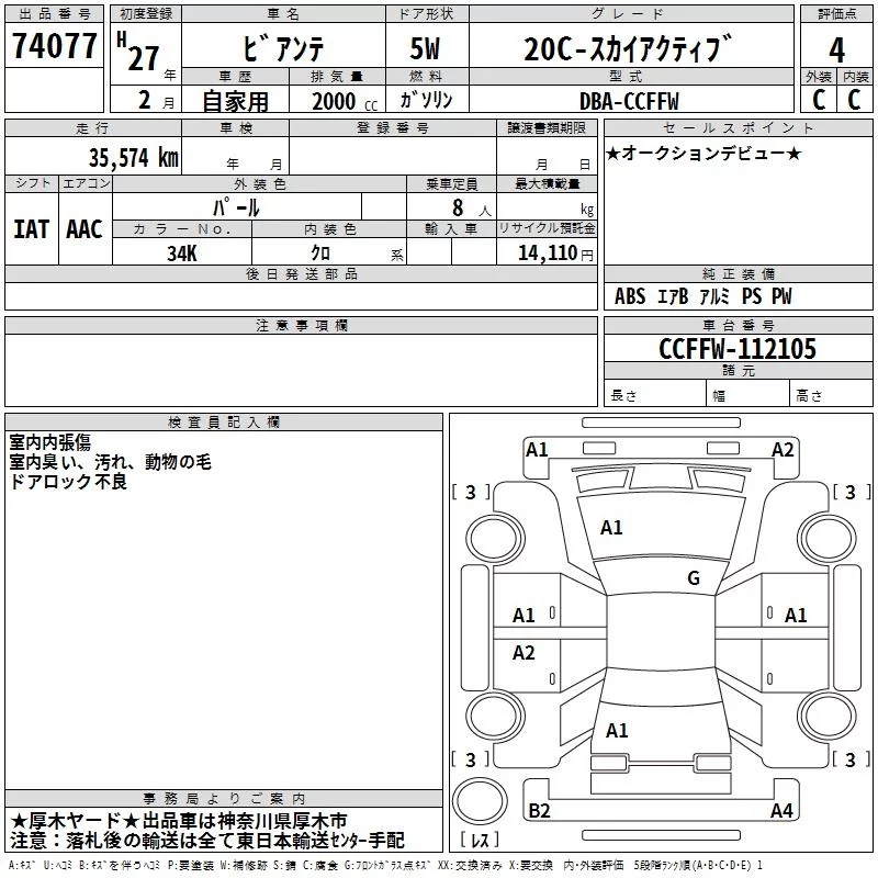 Mazda BIANTE с аукциона Японии TAA Yokohama лот № 74077