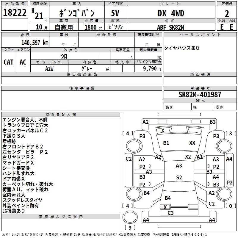 Mazda BONGO VAN с аукциона Японии TAA Yokohama лот № 18222