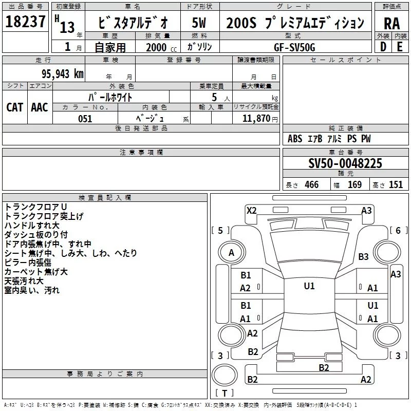 Toyota VISTA ARDEO с аукциона Японии TAA Yokohama лот № 18237