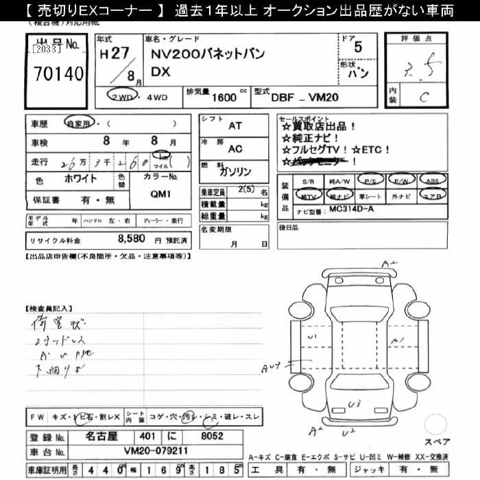 Nissan NV200 с аукциона Японии JU Gifu лот № 70140