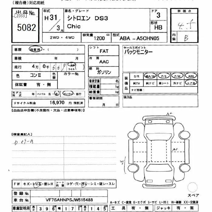 Citroen DS3 с аукциона Японии JU Gifu лот № 5082
