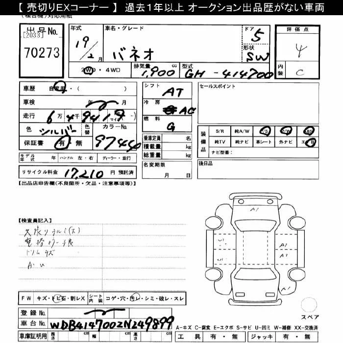 Mercedes-Benz VANEO с аукциона Японии JU Gifu лот № 70273